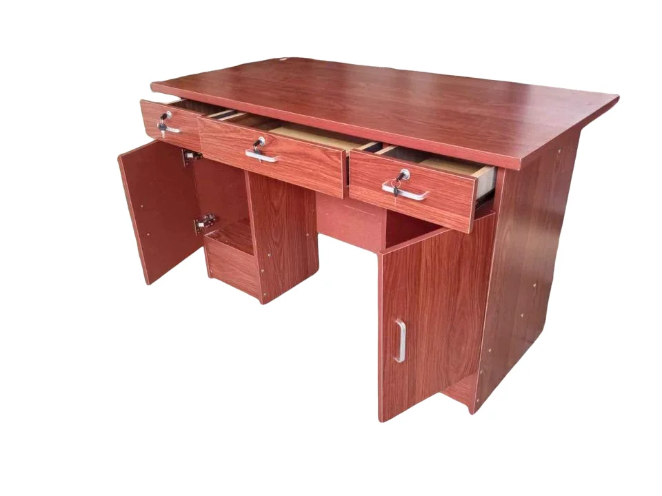 1.4 meters length with a width of up to 0.6 meters and a standard height. Its made of pure mdf board that is durable and resistant to damage. It also has lockable drawers and doors for document storage and files sorting.
