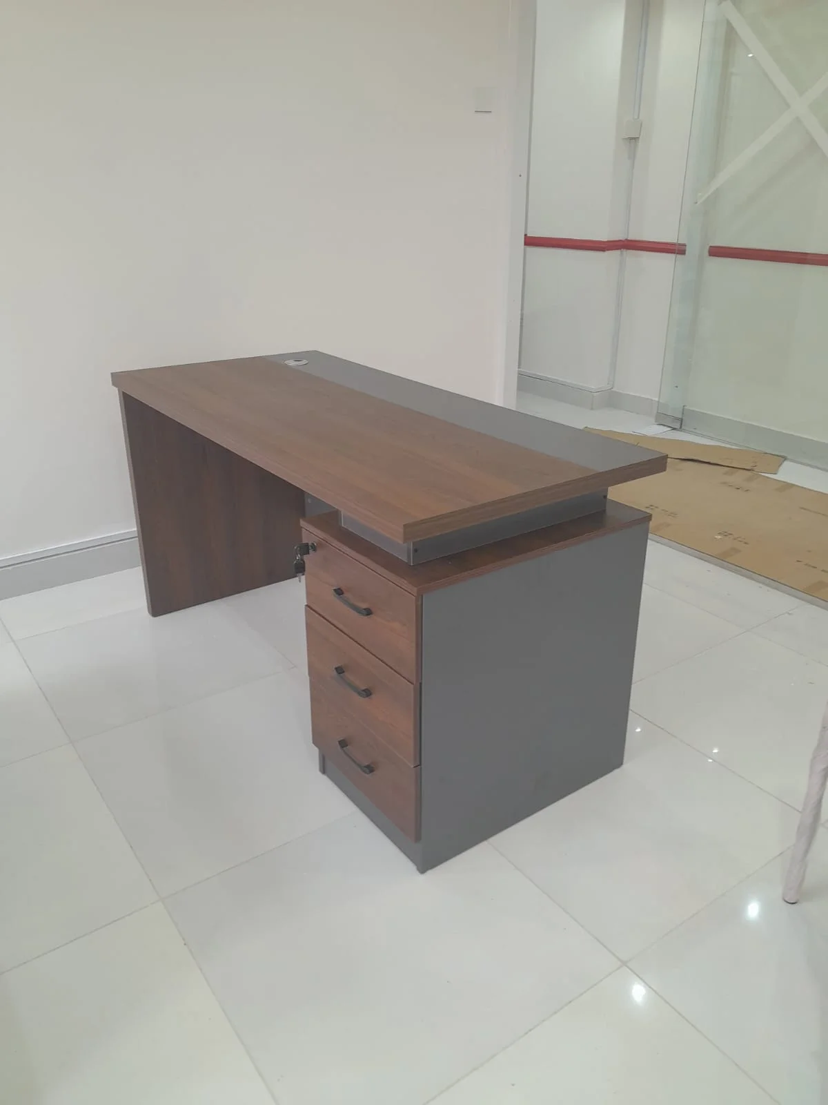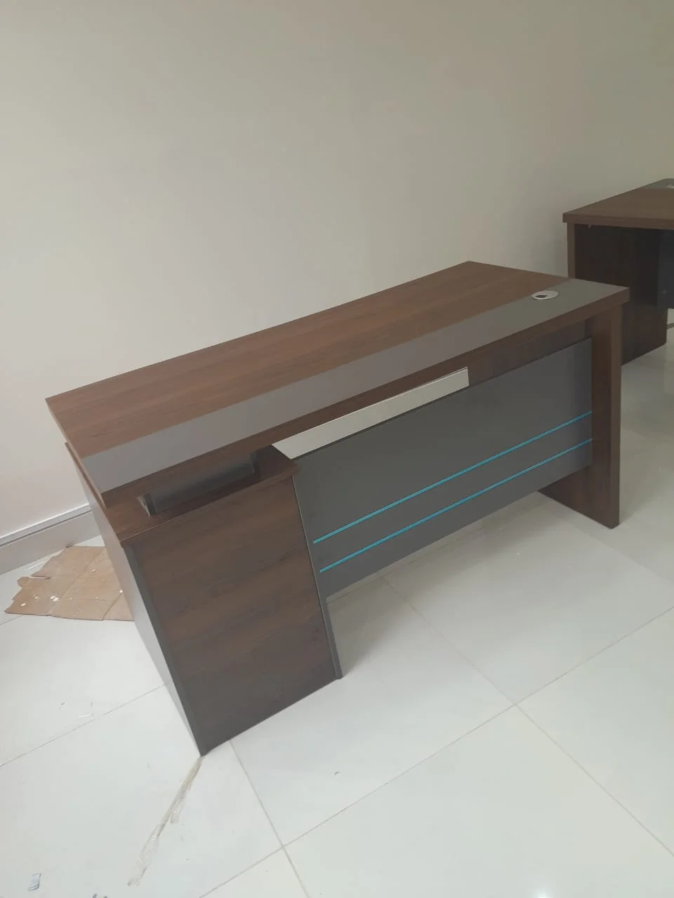Stay organized and clutter-free with integrated storage options. Depending on the model, the desk may include drawers, shelves, or cabinets, providing convenient space to store files, supplies, and personal belongings within arm’s reach.