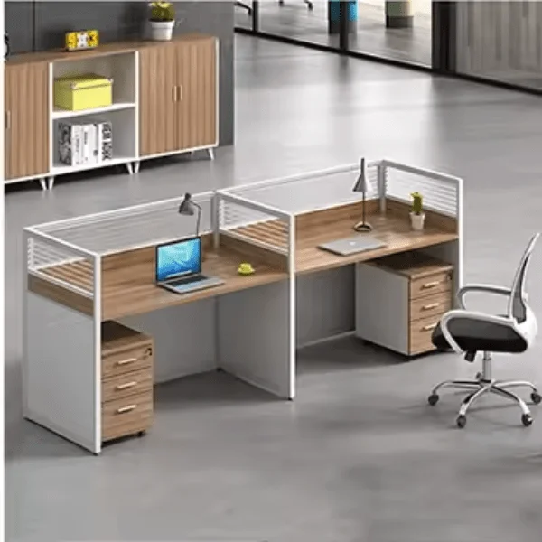 Upgrade your office with the 4-Way Brown Office Workstation with Glass Dividers. Enjoy a more organized, stylish, and efficient workspace that encourages both privacy and collaboration.