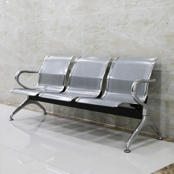 Quality heavy-duty bench made of heavy pure metal that is resistant to damage, rust and breakage. It accommodates up to a maximum of three people and is suitable for any office waiting space. The legs are rounded at the bottom to keep it stable and strong to support any sitting weight.