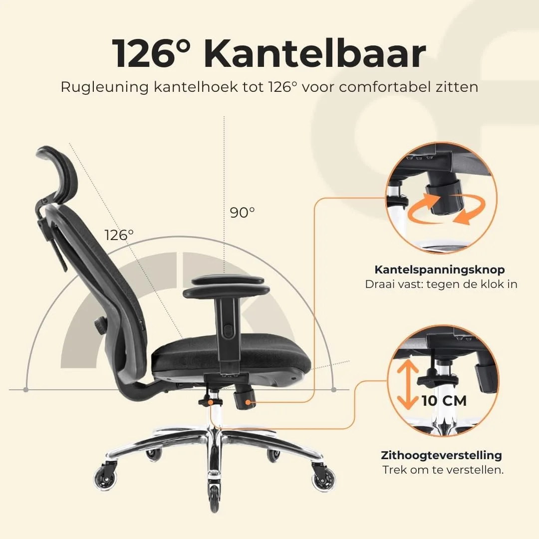 Black Office Chair with 150kg Load Capacity & Adjustable Lumbar Support – Comfort and Durability Combined