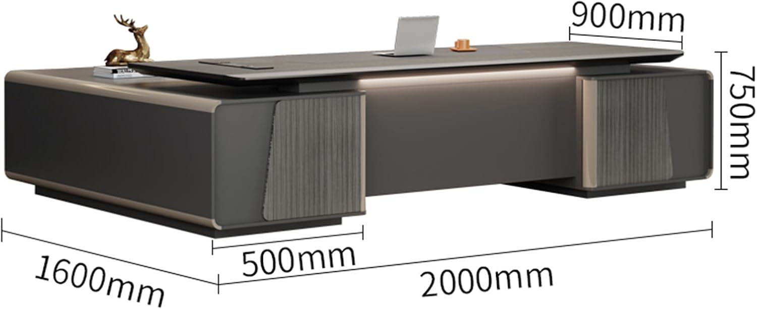 This executive desk also features a practical layout with additional storage options. You can easily organize your office supplies, documents, and personal items, keeping everything you need within reach and reducing clutter. The L-shaped design also creates a designated space for paperwork or a secondary workstation, making it ideal for multitasking and increasing productivity.
