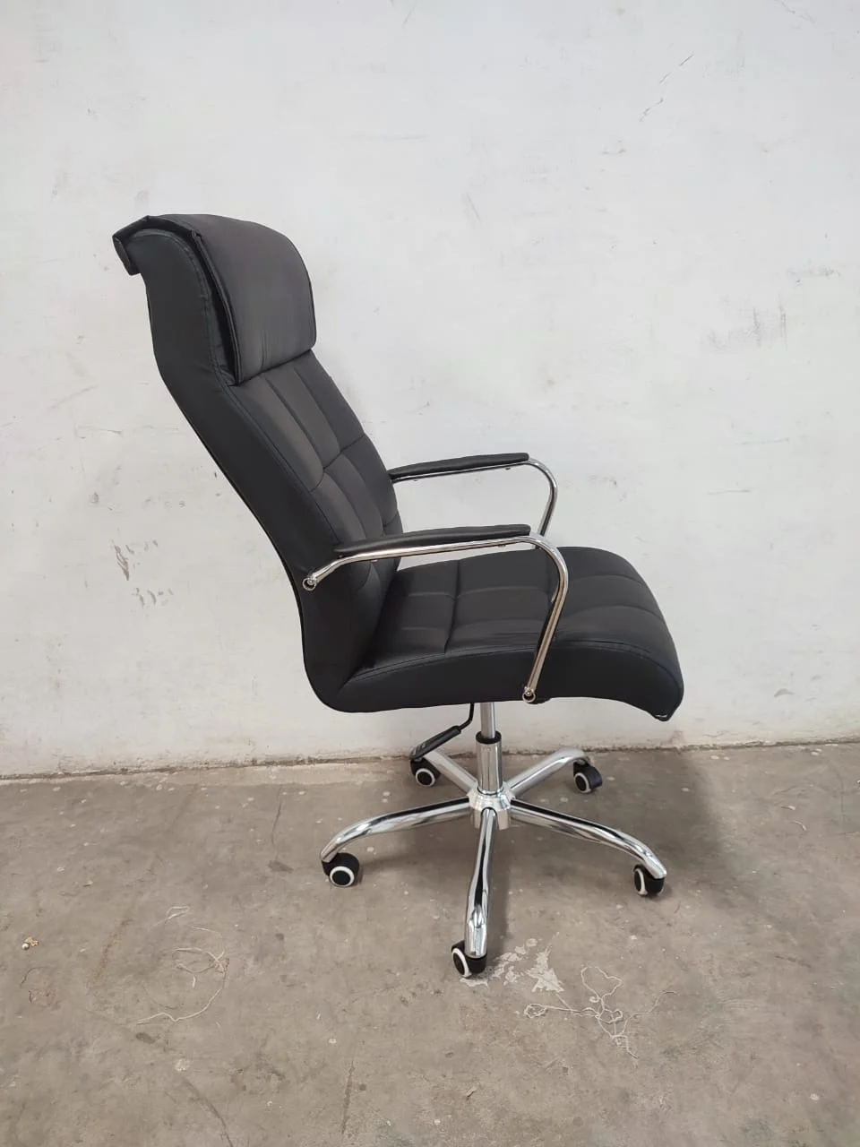 Quality office seat with an up and down adjusting mechanism that allows you to adjust to a suitable sitting height. The pure leather executive office seat has a deep black color making it appealing for any office space. 360° rotation and also swivel for easy push to slide movement.
