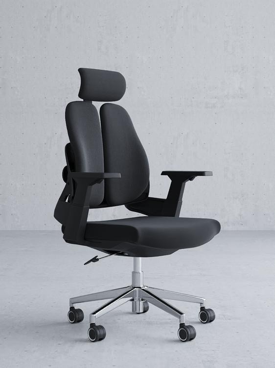 * Height adjustable headrest with soft foam and fabric, Solid Nylon chair back with two big lumbar support , 4cm soft foam with fabric, lumbar can be tilt and width adjustable.