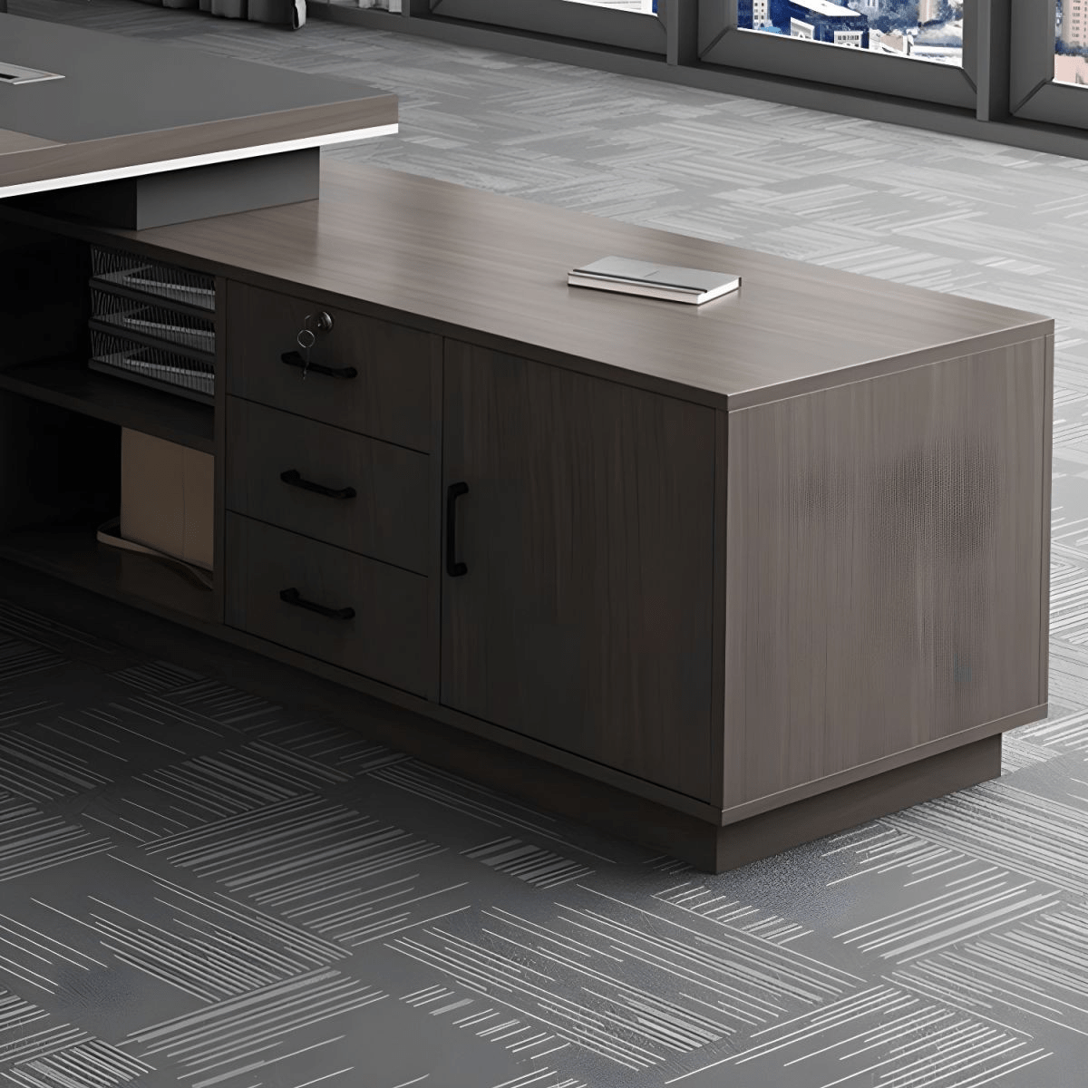 ✔️ Built-in storage – drawers, cabinets, and file organizers