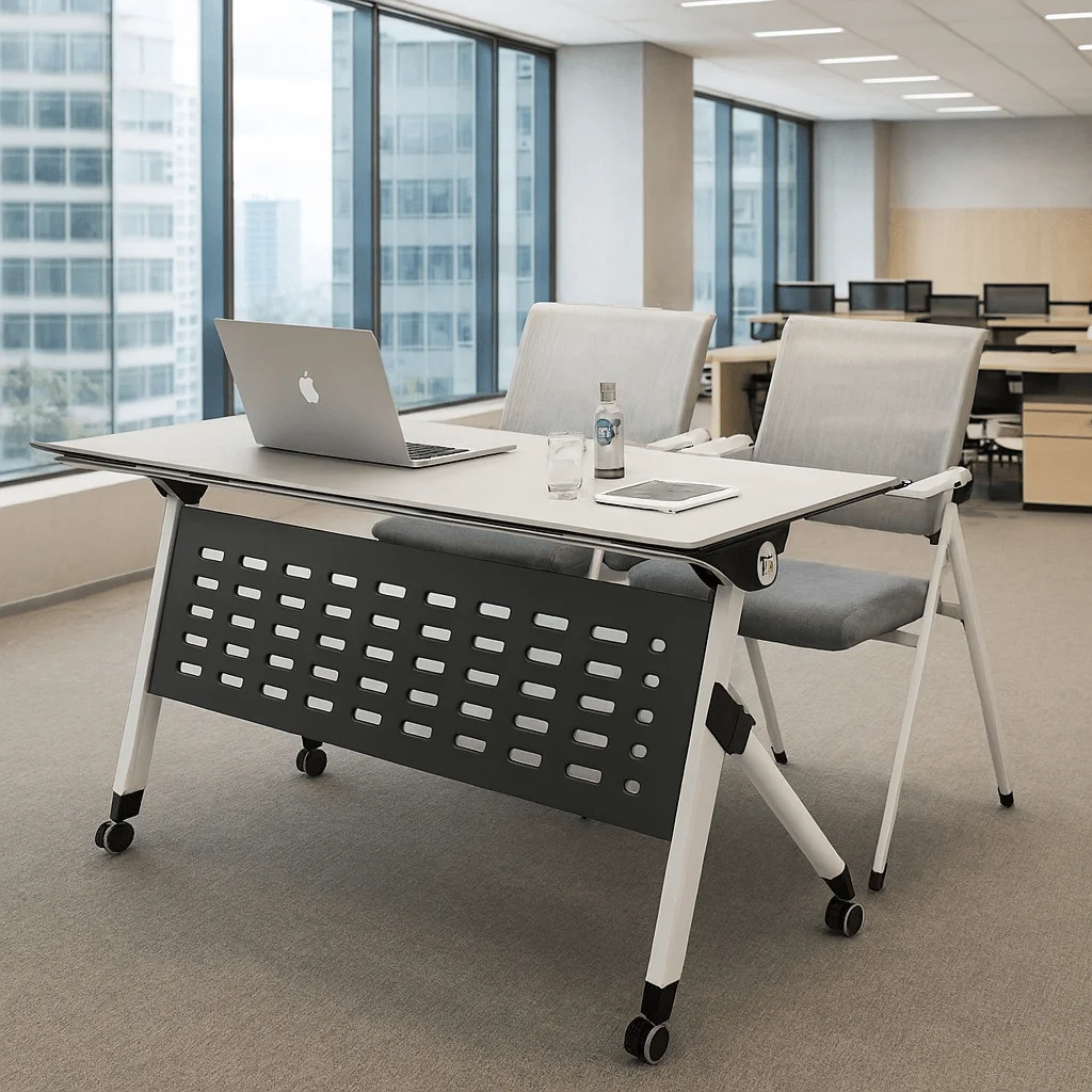 Additionally, the foldable design allows the table to be quickly collapsed when not in use, which helps save valuable floor space. Because of this, it becomes a perfect choice for small rooms, apartments, training centers, or multi-purpose work areas. Even so, its lightweight yet sturdy construction ensures easy handling without compromising durability or strength.