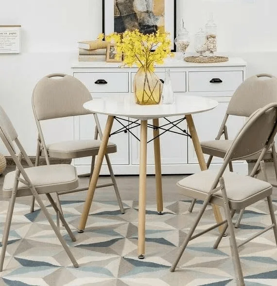 The round structure of this dining table allows for flexible seating arrangements, making it easier to accommodate guests. Unlike rectangular tables, the round design eliminates corners, creating a more inclusive dining experience. It’s ideal for family interaction, social gatherings, and relaxed dining moments.