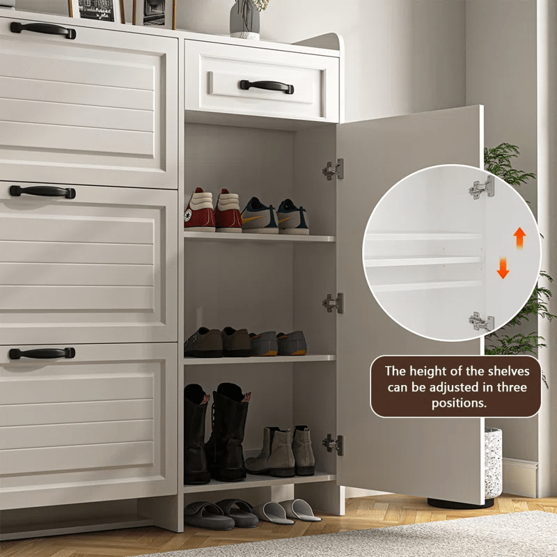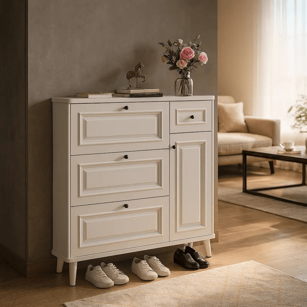 Constructed from high-quality materials such as engineered wood or metal with a white finish, this shoe rack is built to last. The sturdy frame ensures stability, while the smooth surface is easy to clean with a damp cloth. Resistant to scratches and daily wear, it remains looking new even after prolonged use.