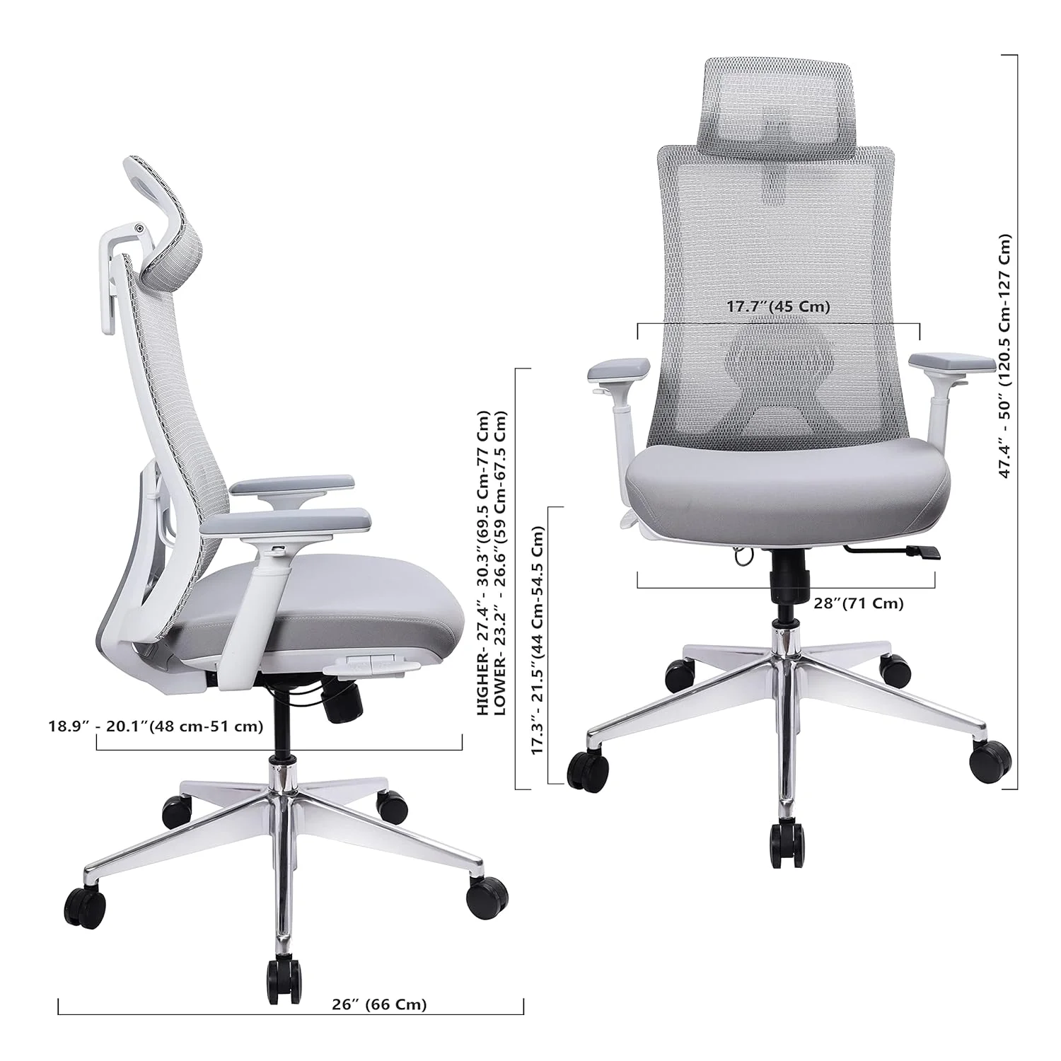 - Seat Height: 450mm – 550mm (17.7 inches – 21.7 inches)