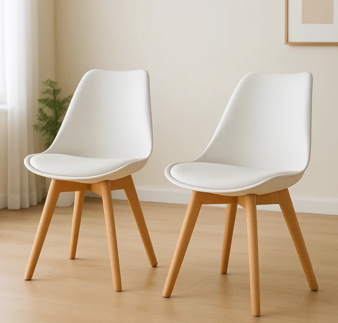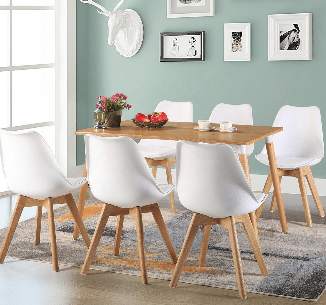 The Eames-style chair is known for its molded shell design and minimalistic appeal. Its smooth curves and clean edges create a visually stunning look. Moreover, it complements a wide range of interiors—from Scandinavian simplicity to contemporary chic. The chair’s gentle contours not only look beautiful but also support your posture, making every meal more enjoyable.