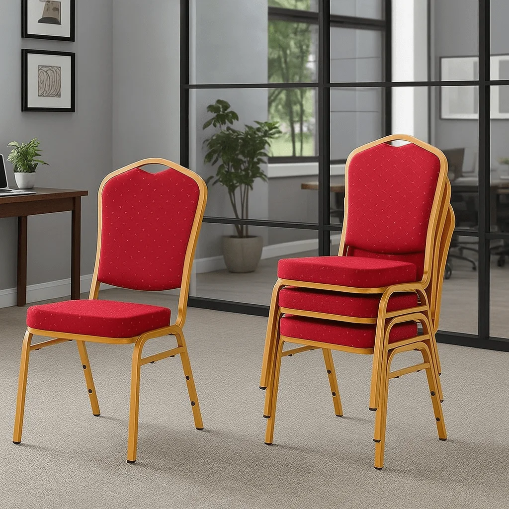 Because of its versatile design, the red banquet conference chair is suitable for a wide range of settings. For instance, it works perfectly in banquet halls, conference rooms, wedding venues, training centers, and religious institutions. Furthermore, the elegant red color complements both modern and traditional décor styles.