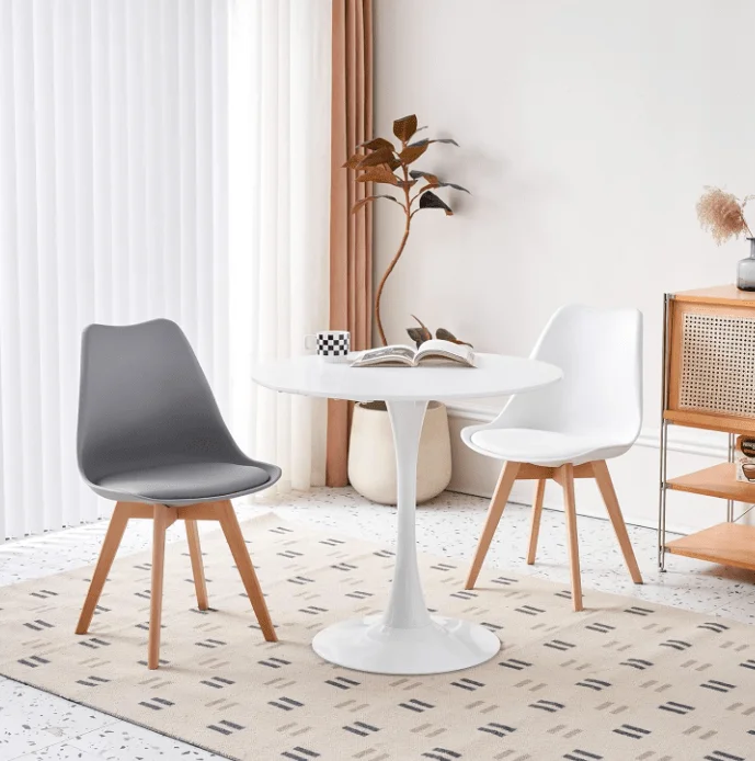 Stable Base: Choose from fixed pedestal or four-leg options, crafted in powder-coated steel or wood for stability and style.