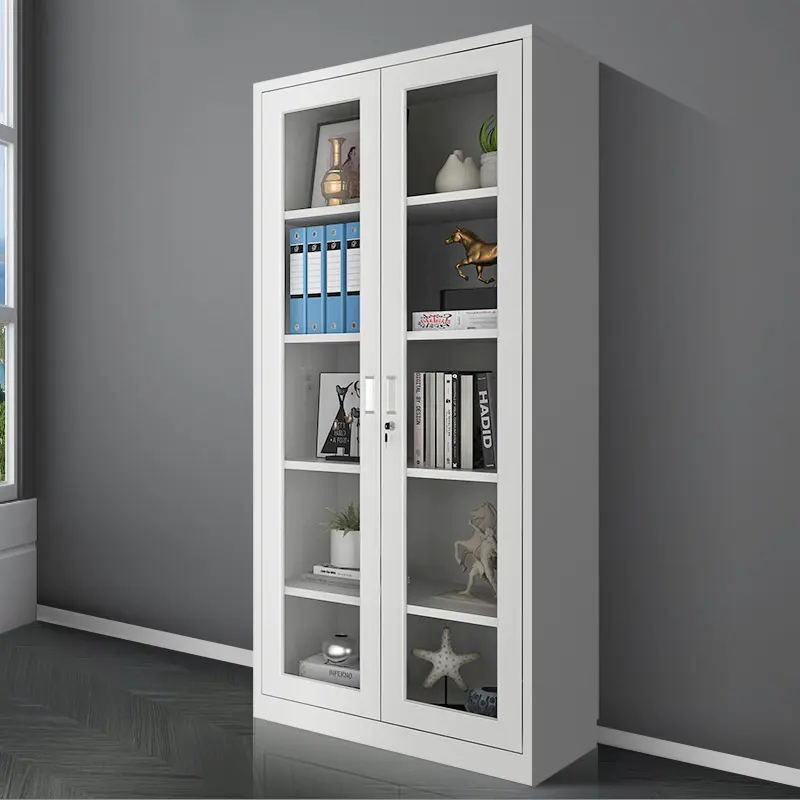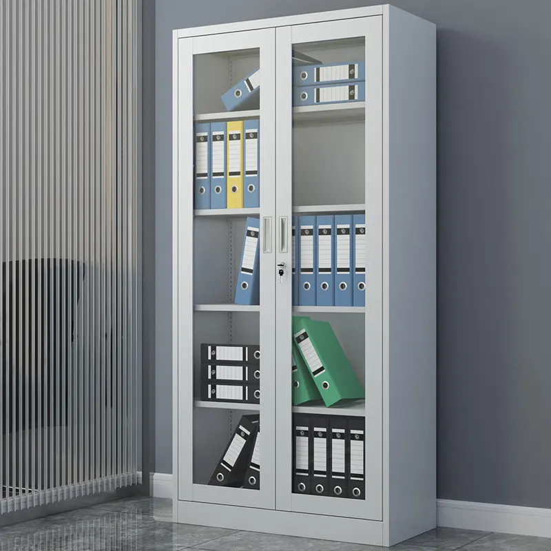 Two door full-glass metallic office cabinet