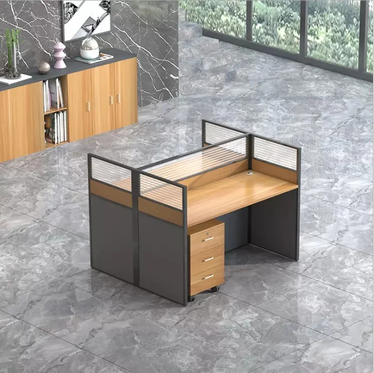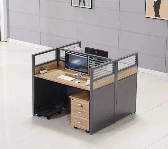 Presenting our cubicle office workstations for 2 persons. Equipped with glass partitions, it is made of fine wood with a great finish. It features includes Grommets for neat and easy cable management. Each segment consists of three wooden lockable drawer pedestal with a CPU trolley. This 2-way wooden workstation has a straight desk, with each seat having 3 fixed drawers with all drawers lockable for important papers. The desk has a grommet for easy cable organization, so the workspace can stay clutter-free. 2-Way Workstation in Kenya is a modern design with wooden staff desks for a creative, collaborative workplace. This open office partitioning helps keep workers on track by limiting distractions while at work. Visit Us at our showroom